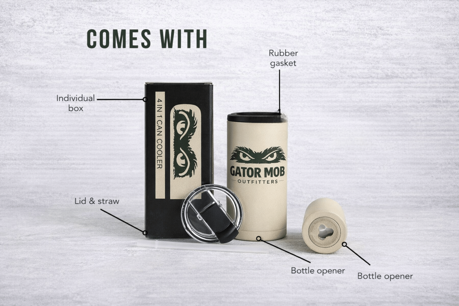 Built for long days on the water and nights that don’t end early, the Gator Mob 4-in-1 Cooler Cup does it all.